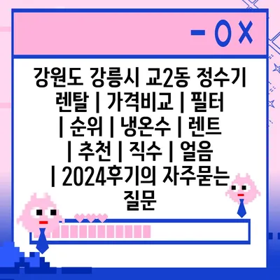 강원도 강릉시 교2동 정수기 렌탈 | 가격비교 | 필터 | 순위 | 냉온수 | 렌트 | 추천 | 직수 | 얼음 | 2024후기 에 대해 자주 묻는 질문 TOP 5