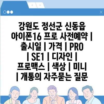강원도 정선군 신동읍 아이폰16 프로 사전예약 | 출시일 | 가격 | PRO | SE1 | 디자인 | 프로맥스 | 색상 | 미니 | 개통 에 대해 자주 묻는 질문 TOP 5