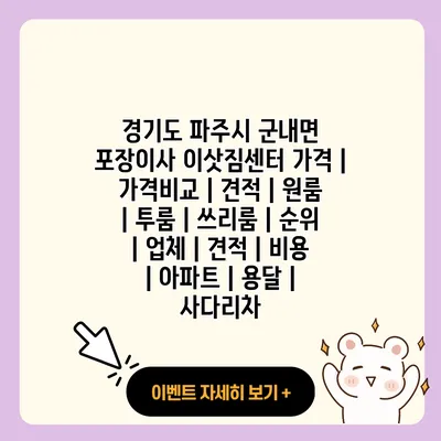 경기도 파주시 군내면 포장이사 이삿짐센터의 가격 비교와 업체 선정 가이드