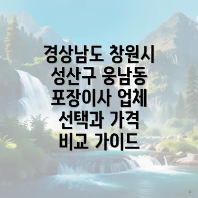 경상남도 창원시 성산구 웅남동 포장이사 업체 선택과 가격 비교 가이드