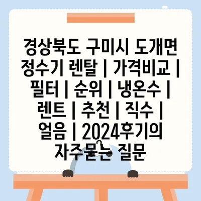경상북도 구미시 도개면 정수기 렌탈 | 가격비교 | 필터 | 순위 | 냉온수 | 렌트 | 추천 | 직수 | 얼음 | 2024후기 에 대해 자주 묻는 질문 TOP 5