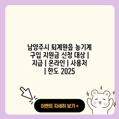✅ 남양주시 농기계 구입 지원금의 모든 정보를 확인해 보세요.