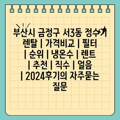 부산시 금정구 서3동 정수기 렌탈 | 가격비교 | 필터 | 순위 | 냉온수 | 렌트 | 추천 | 직수 | 얼음 | 2024후기 에 대해 자주 묻는 질문 TOP 5