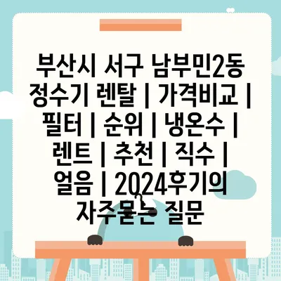 부산시 서구 남부민2동 정수기 렌탈 | 가격비교 | 필터 | 순위 | 냉온수 | 렌트 | 추천 | 직수 | 얼음 | 2024후기 에 대해 자주 묻는 질문 TOP 5