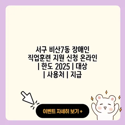✅ 서구 비산7동 장애인 직업훈련 지원 신청 절차를 자세히 알아보세요.