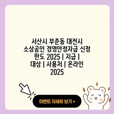 2025 서산시 부춘동 대전시 소상공인 경영안정자금 신청 가이드