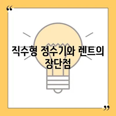 직수형 정수기는 물을 직접 연결하여 사용하는 것으로, 안정적인 물 공급이 특징입니다. 반면, 렌트는 초기 비용 부담 없이 다양한 제품을 경험할 수 있는 장점이 있습니다.