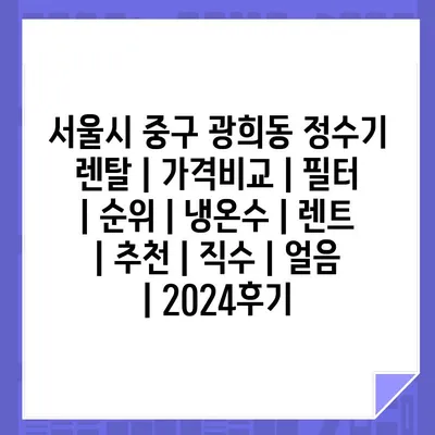 ✅ 광희동 정수기 렌탈의 모든 정보를 지금 바로 알아보세요!