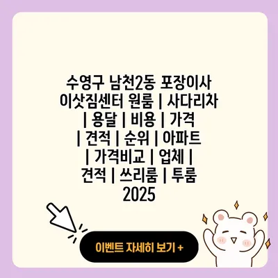 ✅ 남천2동 포장이사 비용 비교와 후기를 지금 바로 확인해 보세요!