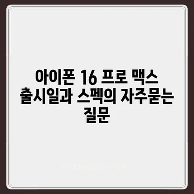 아이폰 16 프로 맥스 출시일과 스펙 에 대해 자주 묻는 질문 TOP 5