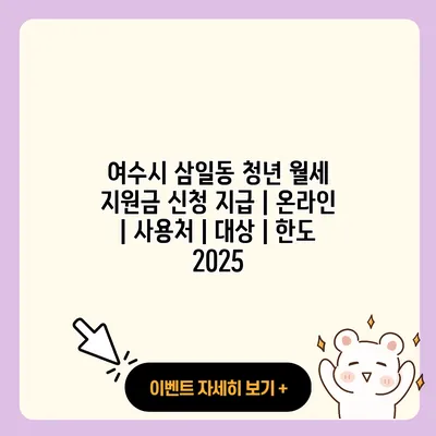 여수시 삼일동 청년 월세 지원금 신청 지급 | 온라인 | 사용처 | 대상 | 한도 2025