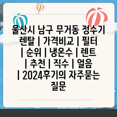 울산시 남구 무거동 정수기 렌탈 | 가격비교 | 필터 | 순위 | 냉온수 | 렌트 | 추천 | 직수 | 얼음 | 2024후기 에 대해 자주 묻는 질문 TOP 5