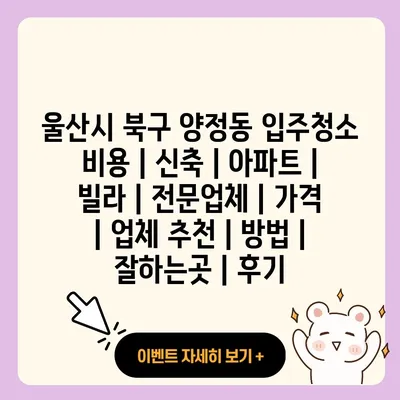 ✅ 울산시 북구 양정동의 입주청소 비용을 쉽게 알아보세요!