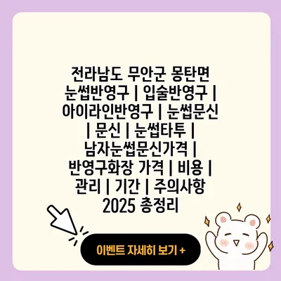 눈썹, 입술, 아이라인 반영구 화장은 최근 많은 이들에게 사랑받고 있습니다. 특히, 전라남도 무안군 몽탄면에서는 이러한 반영구 화장이 더욱 주목받고 있습니다. 이 글에서는 눈썹반영구, 입술반영구, 아이라인반영구 및 이와 관련된 모든 정보를 총정리하여 2025년까지의 흐름을 안내하겠습니다.
