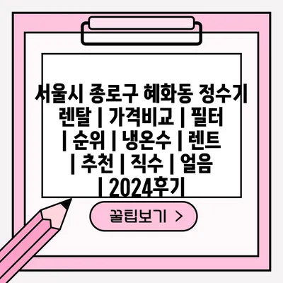 서울시 종로구 혜화동 정수기 렌탈 | 가격비교 | 필터 | 순위 | 냉온수 | 렌트 | 추천 | 직수 | 얼음 | 2024후기 2024-09-03 by abri 서울시 종로구 혜화동에서 정수기 렌탈을 생각하고 계신가요? 2024후기를 통해 다양한 … 더알아보기