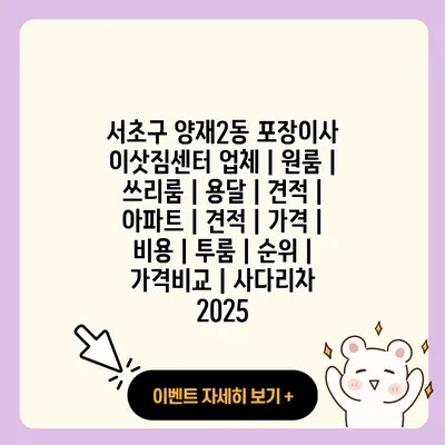 서초구 양재2동 포장이사 이삿짐센터 업체 | 원룸 | 쓰리룸 | 용달 | 견적 | 아파트 | 견적 | 가격 | 비용 | 투룸 | 순위 | 가격비교 | 사다리차 2025