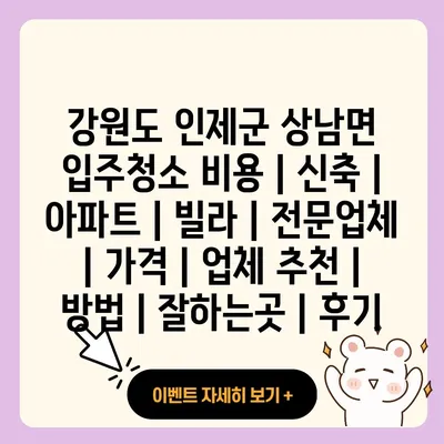 강원도 인제군 상남면 입주청소 비용 및 전문업체 선택 안내 입주 …