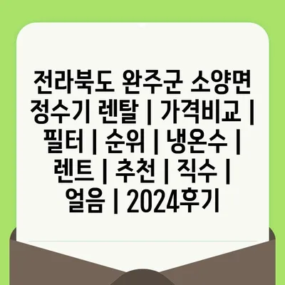 전라북도 완주군 소양면 정수기 렌탈 | 가격비교 | 필터 | 순위 | 냉온수 | 렌트 | 추천 | 직수 | 얼음 | 2024후기