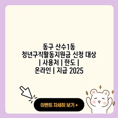 ⚠️ 이 글을 끝까지 읽어보시면 상품이있습니다. ⚠️ 동구 산수1동 청년구직활동지원금, …