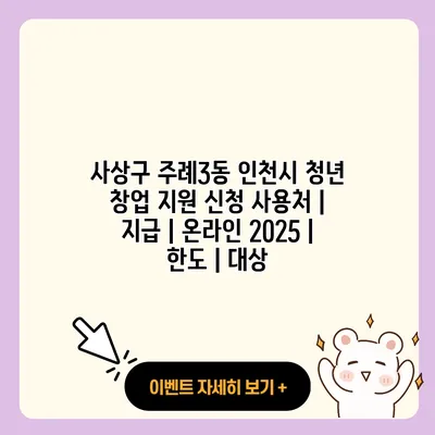 사상구 주례3동 인천시 청년 창업 지원 신청 사용처 | 지급 | 온라인 2025 | 한도 | 대상