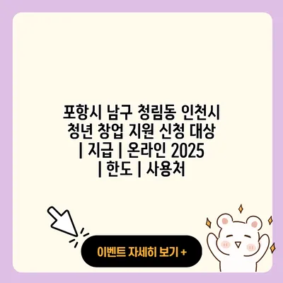 포항시 남구 청림동 인천시 청년 창업 지원 신청 대상 | 지급 | 온라인 2025 | 한도 | 사용처